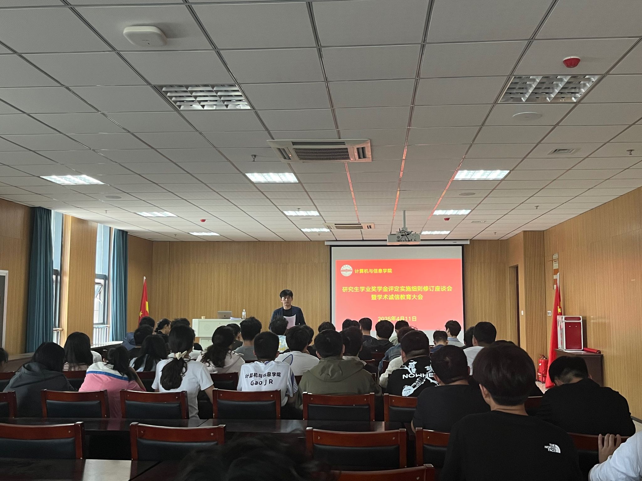 赵兴强重点解读了本年度学业奖学金评定细则修订方向,提出将科研成果质量、实践创新能力等评测方式进行一些修订,并现场征求师生意见。吴峰则针对评审流程规范化、申诉机制完善等内容作了补充说明。与会师生就细则条款进行了热烈讨论,现场气氛活跃。