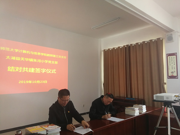 为进一步激发基层党支部活力,提升支部党员党性修养和服务意识,发挥全国样板党支部建设的带动与辐射功能,10月23日,beat365亚洲版官网教师第三党支部赴太湖县西冲村开展“不忘初心、牢记使命”主题党日活动:与西冲村朱河小学党支部开展结对共建签约、为马庙小学捐赠课外书籍实施教育扶贫、在马庙烈士墓接受革命传统教育、集体听党课。