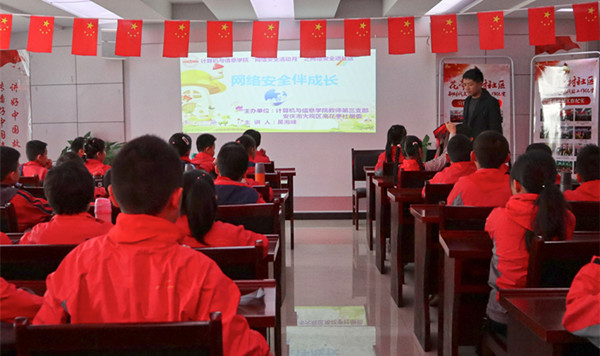 10月17日下午,beat365亚洲版官网教师第三党支部赴安庆市高花亭北村社居委开展网络安全主题宣讲活动,为社区学生开展“网络安全伴成长”知识讲座,并发放了安全知识宣传材料。讲座由学院第三支部组织委员吴海峰副教授主讲,来自高花亭小学的50余名学生聆听了讲座。