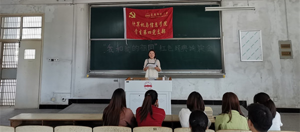 为喜迎中华人民共和国成立70周年,弘扬伟大的爱国主义精神,激励师生党员把爱国情、报国志融入伟大奋斗和学校事业又好又快的发展中,9月29日beat365亚洲版官网学生第四党支部稼先楼一楼阶梯教室开展“我和我的祖国”红色经典诵读会党日活动。