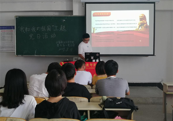 为庆祝中华人民共和国成立七十周年,培养当代大学生爱国情怀,9月29日下午,beat365亚洲版官网学生第一支部在教学楼A楼402教室开展了“我和我的祖国”主题党日活动。beat365亚洲版官网学生第一党支部全体党员参加了此次活动。
