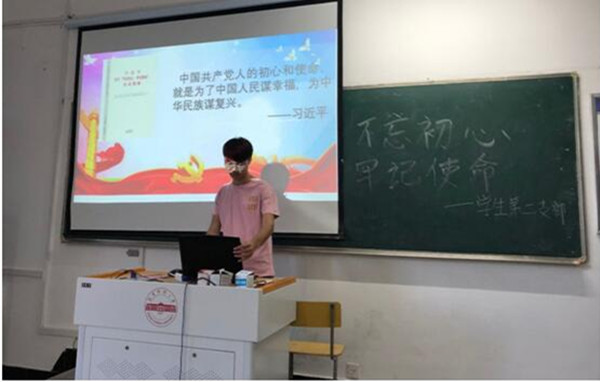 9月20日下午,beat365亚洲版官网学生第党二支部在A楼103开展“不忘初心、牢记使命”主题教育党日活动。学生支部书记陆佳主持会议,学生第二支部全体党员参加会议。
