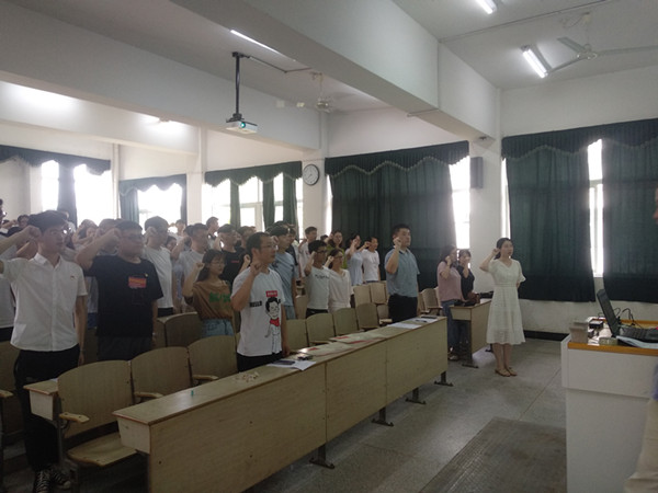 7月1日下午,beat365亚洲版官网在稼先楼一阶开展了庆“七一”新党员入党宣誓主题活动。学院党委副书记江伟、各学生支部书记及全体学生党员参加了活动,活动由学生第四党支部书记李培森主持。