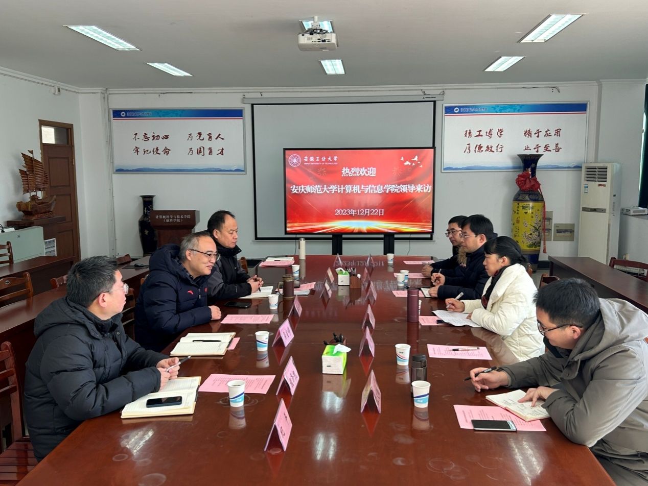 12月22日,学院党委书记陈银凤、院长刘奎等一行6人赴安徽工业大学计算机科学与技术学院开展学习调研活动,深度学习该院全省党建工作标杆院系的培育创建经验,并在学科专业建设等方面进行学习交流。安徽工业大学计算机科学与技术学院党政班子全体成员热情接待了陈银凤等一行。