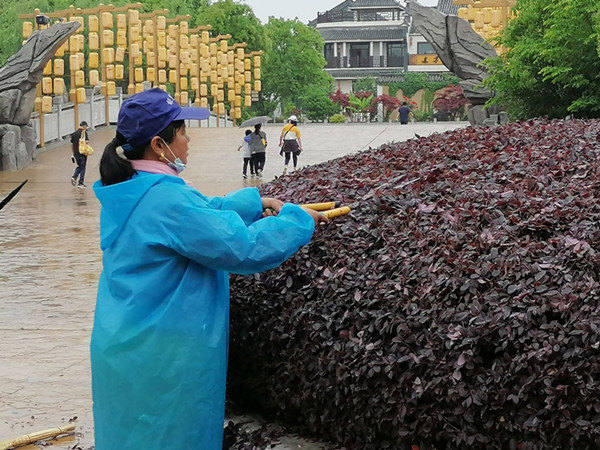 清晨5点多,园艺工人就开始工作了,用辛勤的双手打造一个整洁靓丽的生活环境。园林阿姨说:“一年四季,种花栽树、剪枝除草、浇水施肥等工作,虽然劳动强度不是很大,但是要细心、耐心和有责任心。春夏季是种花栽树的大忙季节,早出晚归更是常事。”她通过熟练的园艺技术修剪出了一件件赏心悦目的园艺艺术品,使得人们心中的因疫情带来的阴霾一扫而空,清新的画面让我们回归了美好体验。