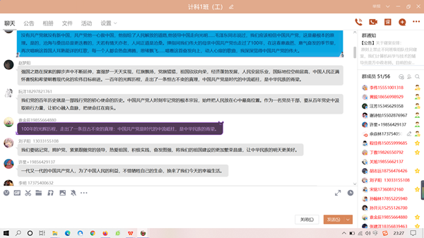 “学党史,强信念,跟党走”主题云团课。5月4日上午10:00学院团委委员和37个基层团支部全体团员集中观看了由团中央、全国学联共同发起的共聚“学党史,强信念,跟党走”主题云团课,团课通过多样的、生动的形式,讲解党史发展脉络,讲清楚中国共产党为什么能、马克思主义为什么行、中国特色社会主义为什么好等重大问题,为团员青年打造了一场特别的青春盛宴。当天,共有1600余人次在线参与。学习完毕,各团支部成员结合自身实际,踊跃分享学习习近平总书记重要讲话和党史学习教育对自己成长发展的意义和收获。2019级物联网工程专业陈静同学认为:“我们要充分利用课余时间,提高政治理论素养,向榜样看齐,确立理想目标,脚踏实地奋斗,练就过硬本应,做一名优秀的青年大学生,为实现中华民族伟大复兴中国梦贡献自己的一份力量。”