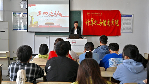 “重温五四运动,传承爱国担当”主题微团课。4月29日中午,学院团委组织各团支部书记、团支部委员、学生会全体成员聆听了一场以“重温五四运动,传承爱国担当”为主题的微团课。优秀学生骨干、2019级物联网工程专业赵明康同学通过视频和讲解的方式与大家一起重温了102年前那段激情燃烧的岁月,先后介绍了五四运动的历史条件、过程、伟大意义和五四精神的基本涵义。随后学院团委老师结合习近平总书记在纪念五四运动100周年大会上的讲话精神和对青年工作的重要论述,分析了五四精神的价值和新时代中国青年的历史使命,提出青年大学生要让奋斗成为青春最亮丽的底色,要在奋斗中实现人生梦想与民族复兴的使命。