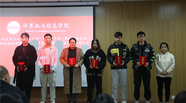 11月10日下午,学院于L314教室举办了“青年马克思主义者培养工程”暨团学骨干第一期培训班结业、第二期培训班开班暨第二十届学生会、第十五届科创换届大会、第四十一届运动会表彰大会。学院党委副书记江晋剑、学工组全体教师、第一期“青马班”学员、第二期“青马班”学员、学生会全体成员、科创全体成员、全体运动员共200余人参加了会议,会议由学院团委负责教师主持。