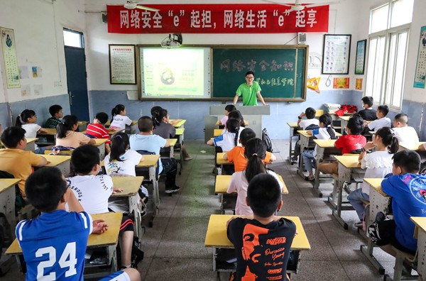 “网络安全‘e’起担,网络生活‘e’起享。”“增强反诈意识,我们同在路上!”……7月6日,实践团走进安庆市大观区高花亭小学,为在场的近50名学生带来了一次别开生面的趣味宣讲活动。