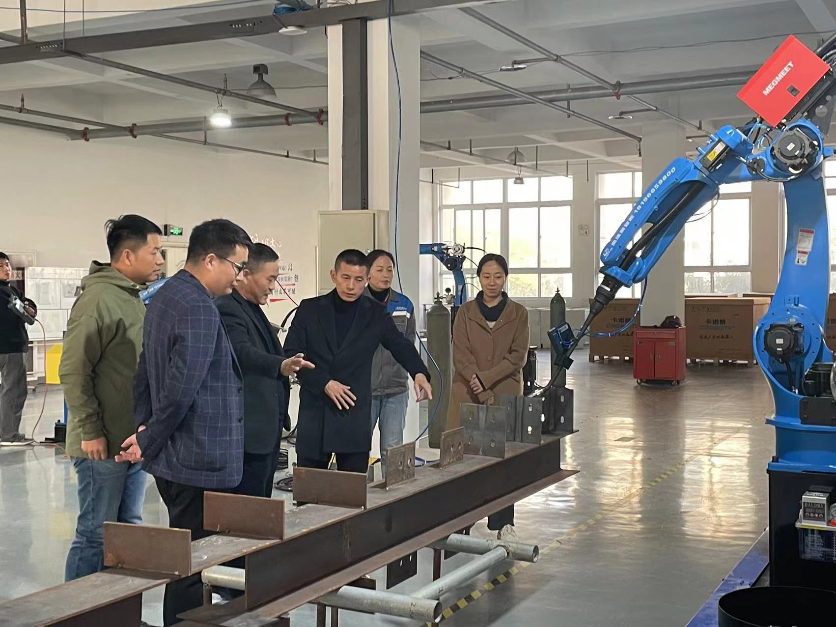 王远志一行实地参观了企业的研发中心和应用中心,观看了企业在机器人、机器视觉等领域的先进技术和工业应用。王远志介绍了学院基本情况和人工智能产业学院建设现状。他表示,现代产业学院作为“产教融合”的创新模式,通过引导高校面向区域、面向行业、面向产业办学,培养出发展所需要的特色型技术人才。产业学院将通过与企业的紧密合作,更好地满足社会对人才培养的需求,提高学生就业竞争力。通过校企联合招生,将课程内容、教学方式与生产实践对接,企业需要什么岗位的人才,学校订单式设置相关专业和课程。吴海峰介绍了学院毕业生实习就业等情况,希望双方加强校企合作,逐步将订单式培养落到实处,并表示期待在相关专业的实习和就业上与企业达成深度合作。奥维斯智能设备公司负责人介绍了公司的规模、业务领导、科研团队,并提出了在人工智能、机器人领域的人才需求情况,表达了期待与beat365官网相关专业合作进行人才培养的愿景。物联网工程专业负责人汪文明和智能科学与技术专业负责人施赵媛分别介绍了相关专业人才培养方案,表达了相关专业在学生实践技能培养方面的迫切需求。双方就订单式人才培养的课程设置和培养方案进行了深入讨论。