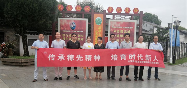 传承红色基因,强化育人使命。7月8日,学院教工第三党支部开展了“传承稼先精神 培育时代新人”的主题党日活动,支部党员赴邓稼先故居接受革命传统教育。雨中的邓稼先故居粉墙黛瓦,朴素雅致,一张醒目的“大力弘扬新时代科学家精神”的标语映入眼帘,支部成员怀着崇敬的心情瞻仰了邓稼先先生的塑像,集体学习了邓稼先的家学渊源、生平事迹和科研报国之路等展板资料。大家从生动翔实的照片、科学严谨的手稿、朴素的生活用品中学习了“两弹元勋”邓稼先的先进事迹,感受到了其舍生忘死报效国家的光辉形象。为了充分表达对稼先精神学习与红色基因的传承,为党的教育事业持续奋进,支部党员在现场重温了入党誓词,增强了新时代的育人使命。