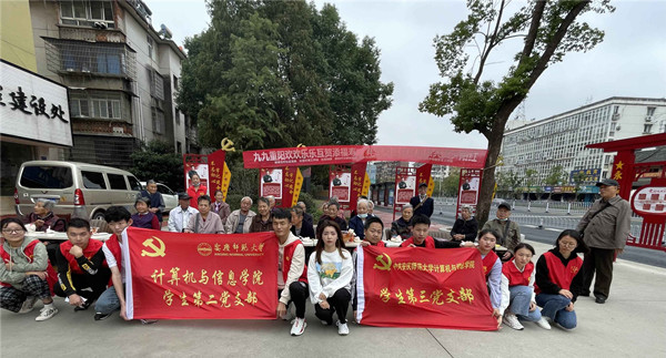 10月14日,beat365官网学生第二、第三党支部与黄梅剧艺术学院直属党支部的学生党员共赴安庆市大观区花亭北村社区敬老院送温暖,陪伴老人欢度重阳节。