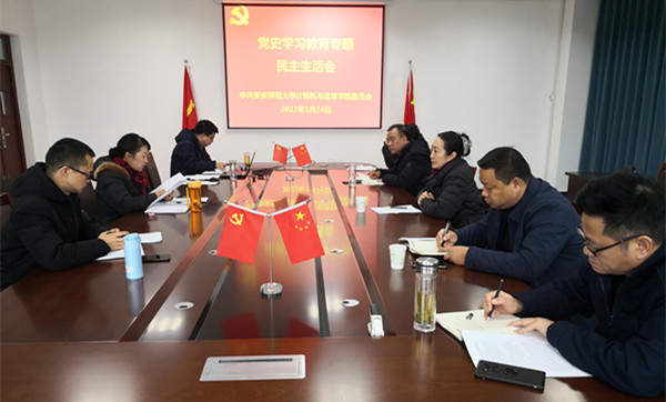 按照学校党委统一部署,1月24日上午,学院党委在L楼318会议室召开党史学习教育专题民主生活会。校党委常委、副校长吴琼到会指导。学院党委班子全体成员参加会议,会议由学院党委书记陈银凤主持。会议以“大力弘扬伟大建党精神,坚持和发展党的百年奋斗历史经验,坚定历史自信,践行时代使命,厚植为民情怀,勇于担当作为,团结带领人民群众走好新的赶考之路”为主题,坚持问题导向,深入进行查摆剖析,严肃开展批评和自我批评。