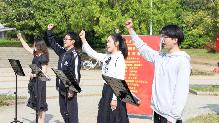 891个字,72行诗,4页稿纸,讲述着邓稼先的一生……一首由2021级“邓稼先”班的刘琪同学原创的诗歌《追寻》被4名朗诵者现场朗诵。从涉洋学成毅然归国,到为创国之利器隐姓埋名28载,到只身一人深入核试验“危险区”,再到临终前仍心系家国天下,伴随着朗诵,“稼先青年”们走过了邓老的一生。“我骄傲我是中华儿女,我自豪我是新时代青年……”在宣誓后,全体同学在雕像旁的《青年誓词》誓词板上签下了自己的姓名。“无论我们来自哪里,叫什么名字,我们站在这里,身为稼先班的一员,我们就是‘稼先青年’。该班梁志超同学表示,在誓词板上“有了姓名”,也意味着在祖国未来的事业建设中也要“有姓有名”,将稼先精神不断发扬光大。