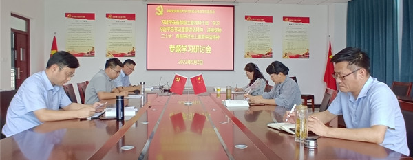 9月2日下午,学院在L楼318会议室召开党委理论学习中心组会议,深入学习贯彻习近平在省部级主要领导干部“学习习近平总书记重要讲话精神,迎接党的二十大”专题研讨班上重要讲话精神,并开展专题学习研讨交流。