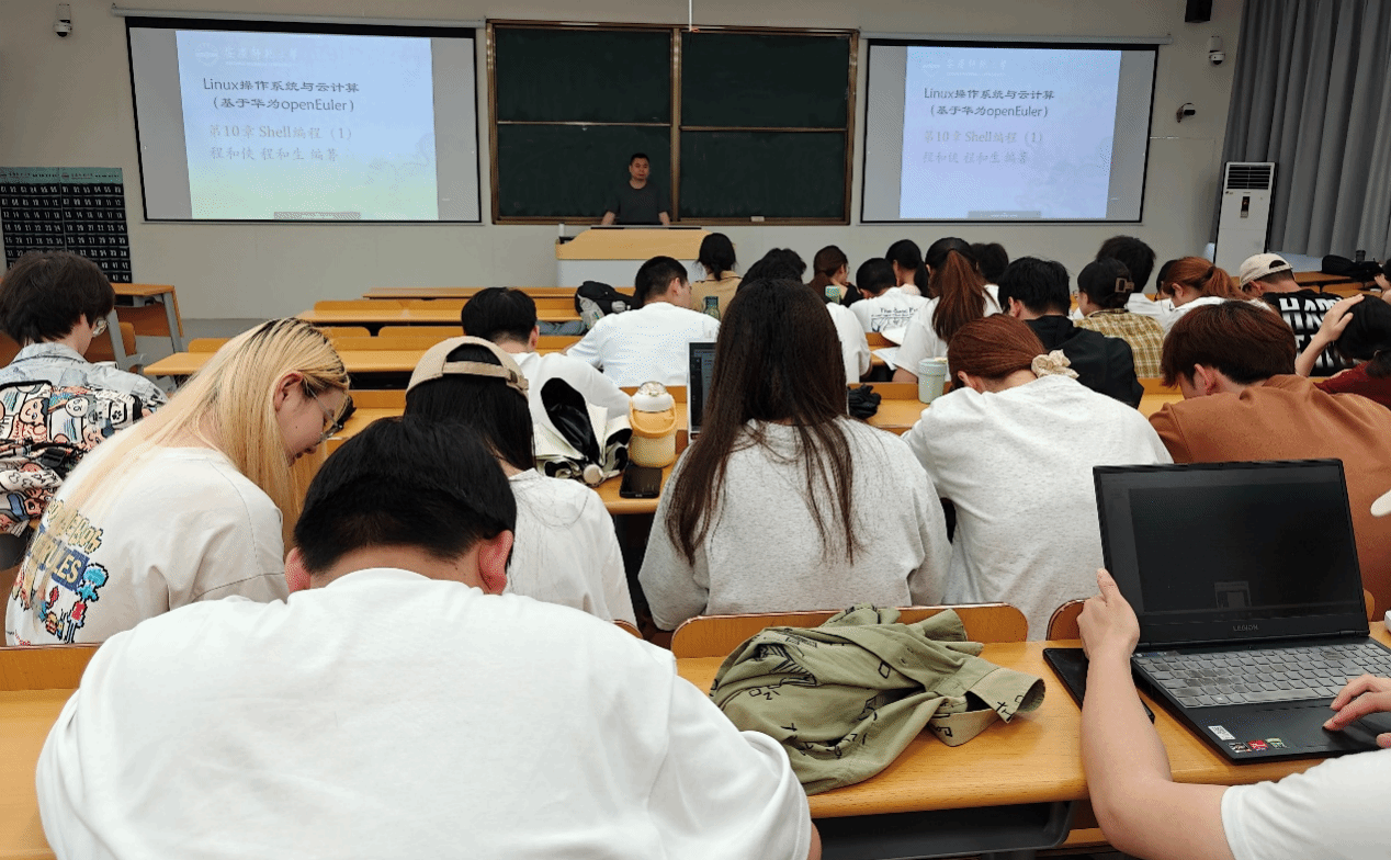 第一阶段党支部全体老师在C108教室先观摩了程和侠老师《Linux操作系统与云计算》第10章 Shell编程的课堂教学。