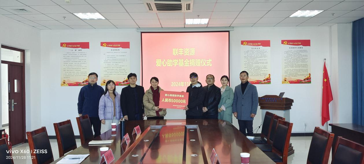11月28日,beat365亚洲版官网举行“联丰资源爱心助学金”捐赠仪式。安庆市联丰再生资源有限公司总经理、我校创新创业校外导师章永丰等一行来校出席活动,校教育发展基金会有关同志、beat365亚洲版官网领导班子全体成员及辅导员代表等参加仪式。