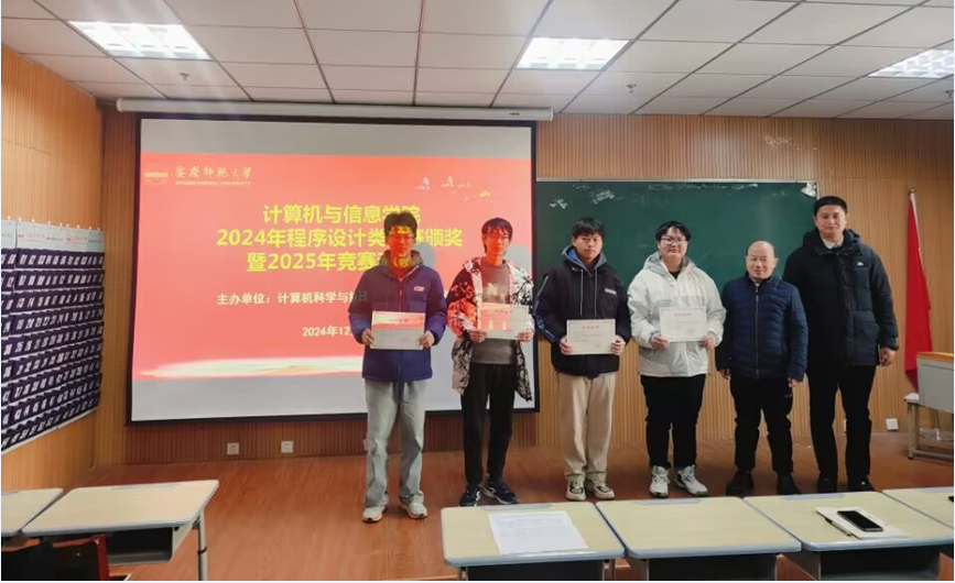 程序设计竞赛教练江克勤向我校2024年在第十五届蓝桥杯全国软件和信息技术专业人才大赛、第九届“中国高校计算机大赛-团体程序设计天梯赛”和安徽省机器人大赛-程序设计赛道的比赛中取得成绩的同学表示祝贺,并就2025年上半年的相关赛事进行了布置和动员。
