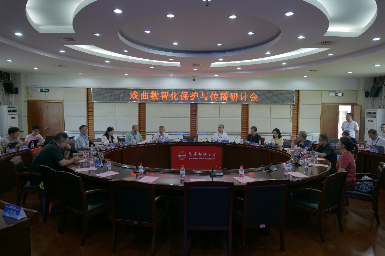 南京信息工程大学潘志庚教授主持圆桌研讨环节。浙江大学彭群生、合肥工业大学刘晓平、中国电影研究所刘达、安庆市文旅集团杨晶琦、beat365亚洲版官网黄梅剧学院李俊、安徽省皖江文化数字化保护与传承工程研究中心王广军以及戏曲与曲艺博士点立项建设学科骨干成员,聚焦“戏曲数智化发展路径”及“如何支撑学校戏曲与曲艺博士点立项建设”两大核心议题展开了深入交流与研讨。
