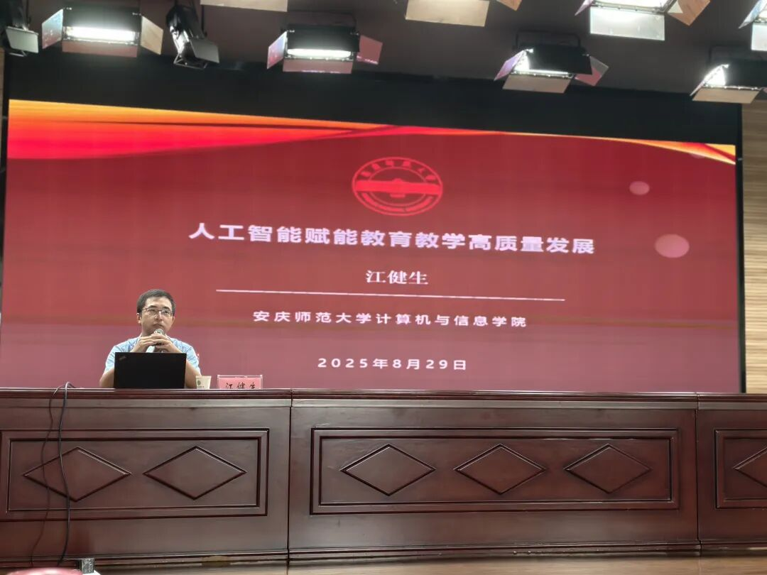 8月29日,beat365官网挂职公园小学副校长江健生老师在公园小学会议室,作题为《人工智能赋能教育教学高质量发展》的专题讲座。本次活动是公园小学暑期校本培训的重要组成部分,全体公园小学教职工参加培训。