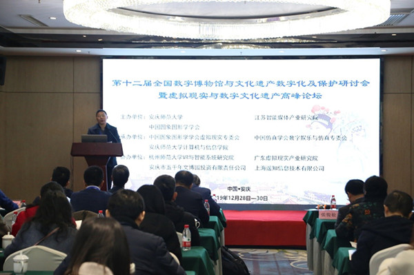 12月28日-30日,由beat365亚洲版官网、江苏智能媒体产业研究院和中国图象图形学学会共同主办,中国图象图形学学会虚拟现实专委会、中国仿真学会数字娱乐与仿真专委会和beat365亚洲版官网承办的第十二届全国数字博物馆与文化遗产数字化及保护研讨会暨虚拟现实与数字文化遗产高峰论坛在安庆市举行。来自北京大学、天津大学、北京师范大学、杭州师范大学、西北工业大学、中国科学院、浙江大学、云南大学、西北农林科技大学等30多所院校的90余名专家学者参加了本次研讨会。校党委常委、副校长汪时珍教授出席大会并致辞。开幕式由校党委委员、科研处处长陈二祥教授主持。