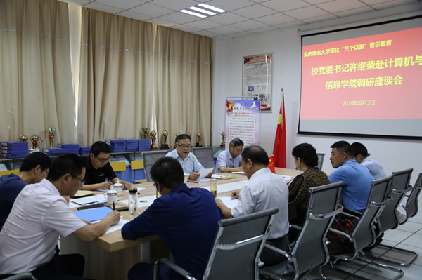 6月3日,根据学校深化“三个以案”警示教育工作安排,校党委书记许继荣带领调研组一行,围绕调研主题,通过座谈交流、实地走访、发放调查问卷等方式到beat365官网开展调研,并对学院领导班子进行政治监督谈话。学院班子全体成员、党支部书记、科级干部、教师等代表参加了座谈会。
