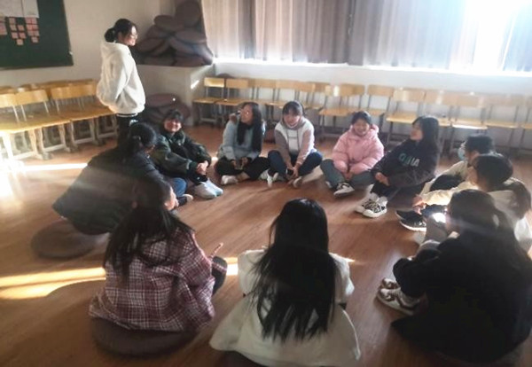 “兔子坐,兔子坐,兔子坐完蛇来站。”12名女生每人以一种动物为代号,团团坐玩起了“萝卜蹲游戏”,敬敷女生工作坊第15期团辅班成员们在欢声笑语中开展朋辈辅导活动。“同舟共济”“名字滚雪球”“转圈弹糖”……新颖有趣的游戏让团队成员们体验了一次“破冰之旅”。大家通过团体心理游戏,开展心理分享与领悟,在娱乐中放松身心,增强了团队信任与合作。