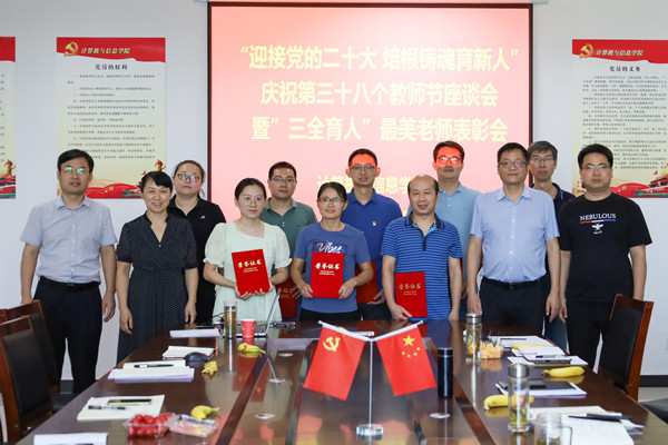 9月7日下午,学院于L楼318教室召开2022年“三全育人”最美老师表彰座谈会。学院党政领导班子成员、受表彰的优秀教师、教师代表及2022年新进教职工参加了座谈会,院党委副书记刘燕杰主持会议。