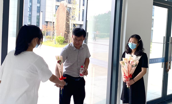 各组均将鲜花祝福送到了教师的手中。计算机科学与技术专业2020(1)班的付雅妮是“送花使者”中的一员,在看到招募信息后,她立即报名参加。“我想在这个教师节与中秋节‘双节同庆’的特殊日子里,为辛苦教学的老师们送上一份美好的祝福,希望他们身体健康,工作顺利!”