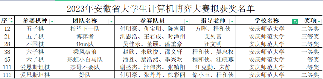 2023年11月24日,beat365亚洲版官网程和侠老师一行带领学生赴合肥参加2023年安徽省博弈大赛决赛,取得1个一等奖、5个二等奖、1个三等奖的好成绩。