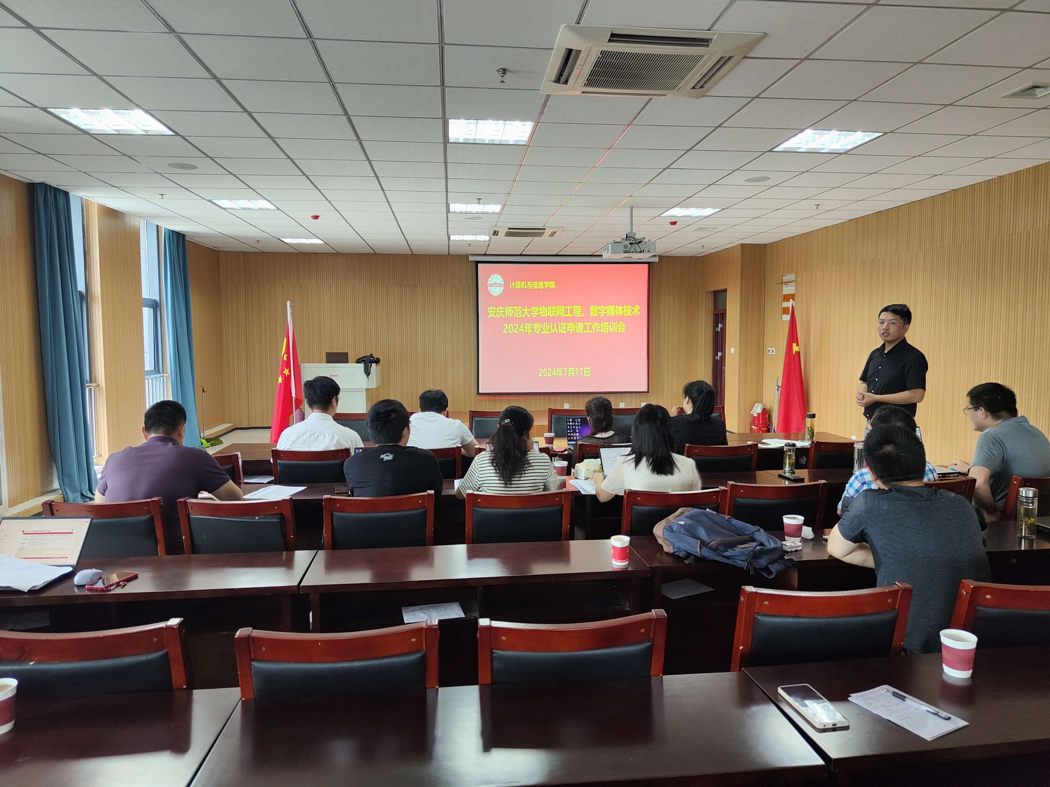 7月17日,beat365亚洲版官网在L302召开暑期工程认证申请工作的专题培训会。物联网工程和数字媒体技术专业工程认证工作组全体成员参加了培训会。会议由副院长吴海峰主持,工程认证技术专家、合肥工业大学石雷副教授应邀做专题培训与指导。